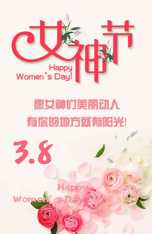 三八妇女节,祝福公司的所有女性同仁。你们在各自的岗位上挥洒智慧与汗水,以女性特有的细腻和坚韧推动公司发展。你们的努力和奉献如同璀璨的星光,洒满企业发展的道路。 在这个特殊的节日里,向公司女员工们致敬。你们以巾帼不让须眉之势,在商海中乘风破浪。愿公司因你们而更加闪耀,你们也更因公司而自豪。愿你们永远活力满满,在事业的征程上再创新高。
